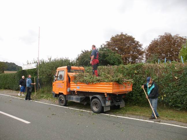 Am Samstag, den 09.09. war es wiedermal soweit, daß einige Gartenfreunde die Ansicht von der viel befahrenen Straße am Erholungsgebiet "Altenburg" mit einem Arbeitseinsatz verschönerten. | |