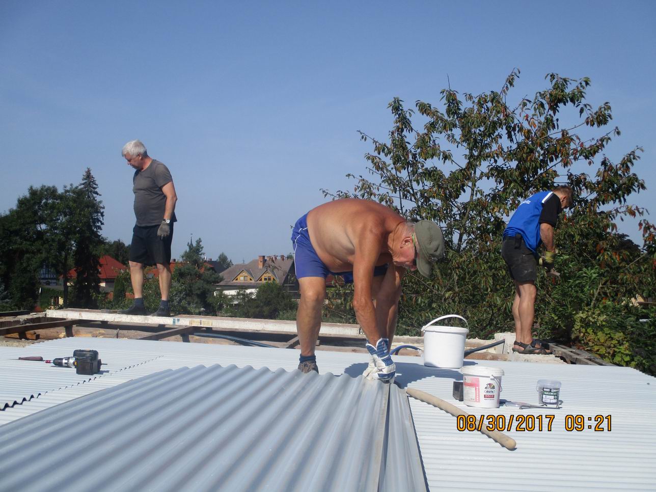 Schuppendach(Wellasbest) durch Aufbringen von plastbeschichteten Metallprofilen