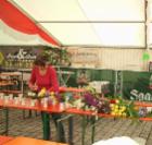 Blumendekoration auf den Tischen im Festzelt der Stadt Triptis aus den Gärten der Vereine |