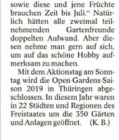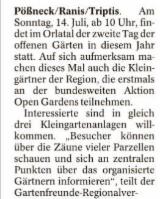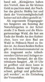 | 14. Juli 2019 | Open Garden in unseren Kleingartenanlagen Wald Pößneck; Köstitz in Pößneck und Einheit in Triptis |