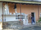 | | Die fleißigen "Bienchen" der KGA "Einheit" Triptis haben die Fassade des Mehrzweckgebäudes, in welchen sich ein Werkstattraum, ein Raum für Brennmaterial,ein Raum für Werkzeuge und Technik sowie zwei Toiletten befinden, mit einem Putz versehen. Ebenfalls einer einheitlichen Farbgebung wurden die Türen unterzogen. Mit dieser Maßnahme haben nun alle Gebäude des Vereines eine einheitliche Farbgebung bekommen. Alle Arbeiten wurden von Vereinsmitgliedern durchgeführt. Besonders engagiert haben sich die Mitglieder des Vereinsvorstandes unter Führung ihres Vorsitzenden. Bis zum Herbst werden unter dem Dachkasten des Schuppens noch Nistkästen für Vögel angebracht . |