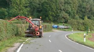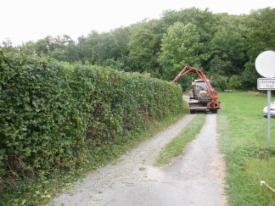 außerhalb der Anlage zwischengelagert. Eine Woche später erfolgte jetzt der Einsatz von Technik einer Pößnecker Firma,um straßenseitig den Schnitt zu bewältigen.