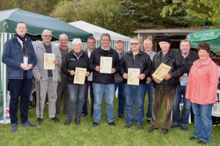 | Vereinsfest zum 30 Jubiläum im KGV Unter der Sachsenburg e.V. Neustadt an der Orla Verdienstvolle Mitglieder des Vereines mit der Ehrennadel des Verbandes gewürdigt | |