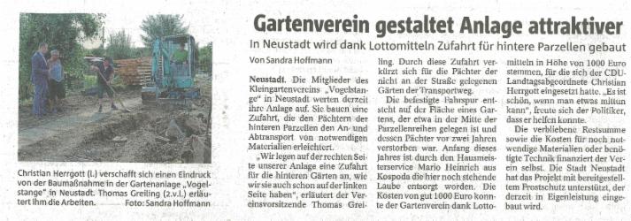 | im Sommer 2018 | Kleingartenverein Vogelstange e.V. Neustadt gestaltet seine Anlage attraktiver |