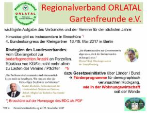 ![]() | 10. November 2018 3. Gesamtvorstandssitzung (der Wahlperiode) Regionalverbandes ORLATAL Gartenfreunde e.V. mit Informationen und Workshop |