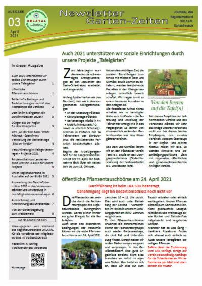 | 20.04.2021 | Newsletter des Regionalverbandes | "GARTEN ZEITEN" Ausgabe Nr. 03 |