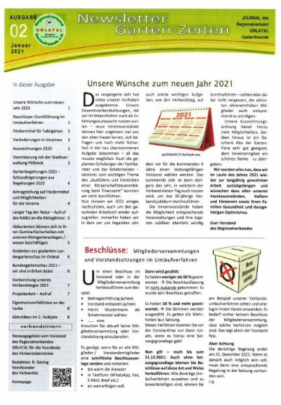 | 17.01.2021 | Newsletter des Regionalverbandes | "GARTEN ZEITEN" Ausgabe Nr. 02 |