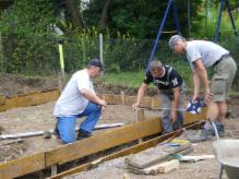| Das Schulungs- und Informationszentrum wurde in Eigenleistung durch Mitglieder des Vorstandes errichtet. Baumaterialien wurden gespendet, bzw.durch Sponsoring (Stadt Pößneck) ermöglicht. Die Inneneinrichtung wurde größtenteils maßgefertigt gespendet. Vielen Dank den Helfern und Sponsoren. | ![]() Aufbau des Schautafelpfades | ![]() |
